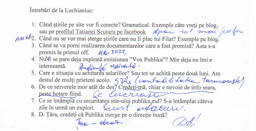 1. Sunt tot mai puține. În viitor se vor întreprinde măsuri să nu mai fie. Toate întrebările la Maia Visterniceanu.